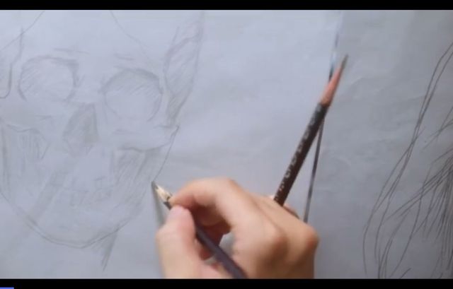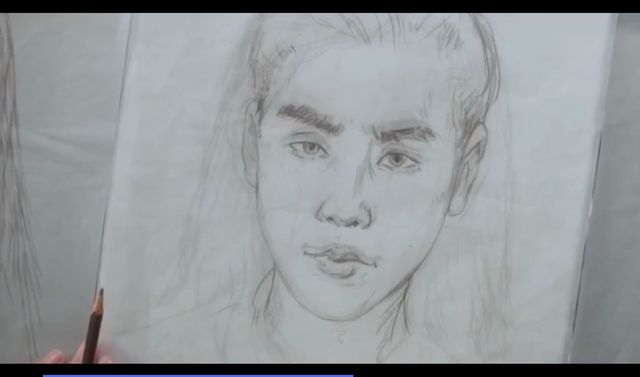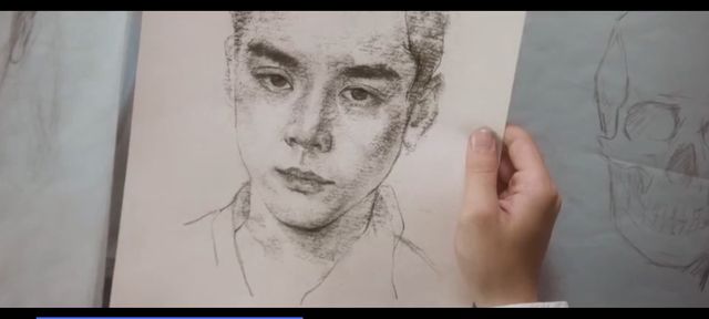 在大体描出一个人后,沈翊拿来了话本和炭笔