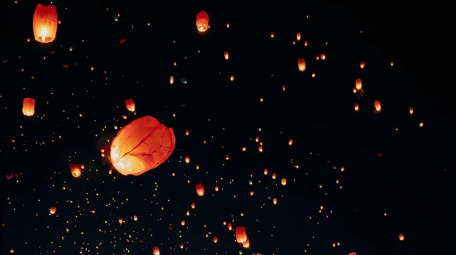透过他的眼眸你看到了身后如星河般的孔明灯,一个倒映出的澄澈的自己。