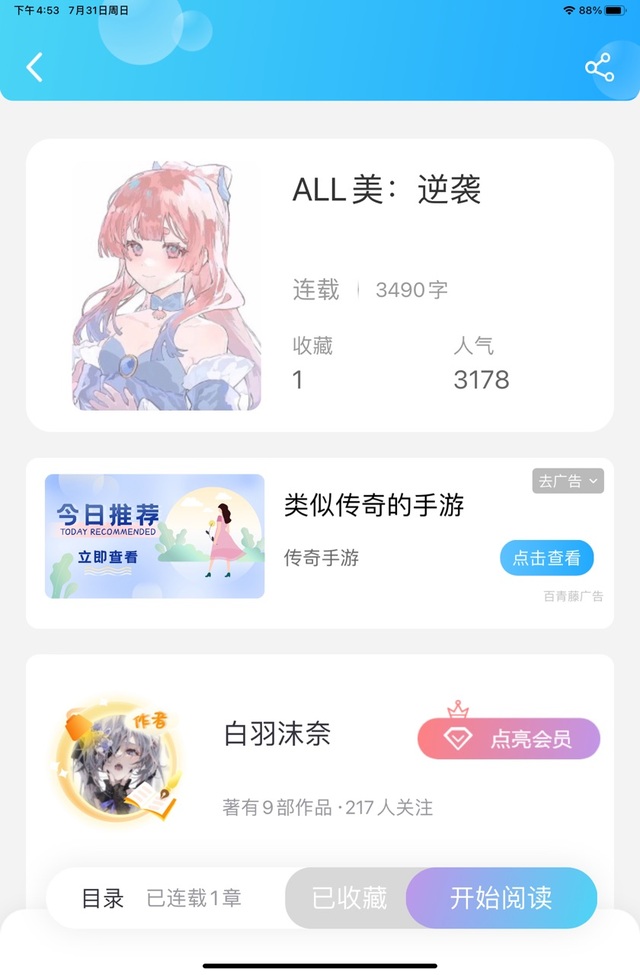 白羽沫奈感觉新书的人气,收藏&评论都好少……
