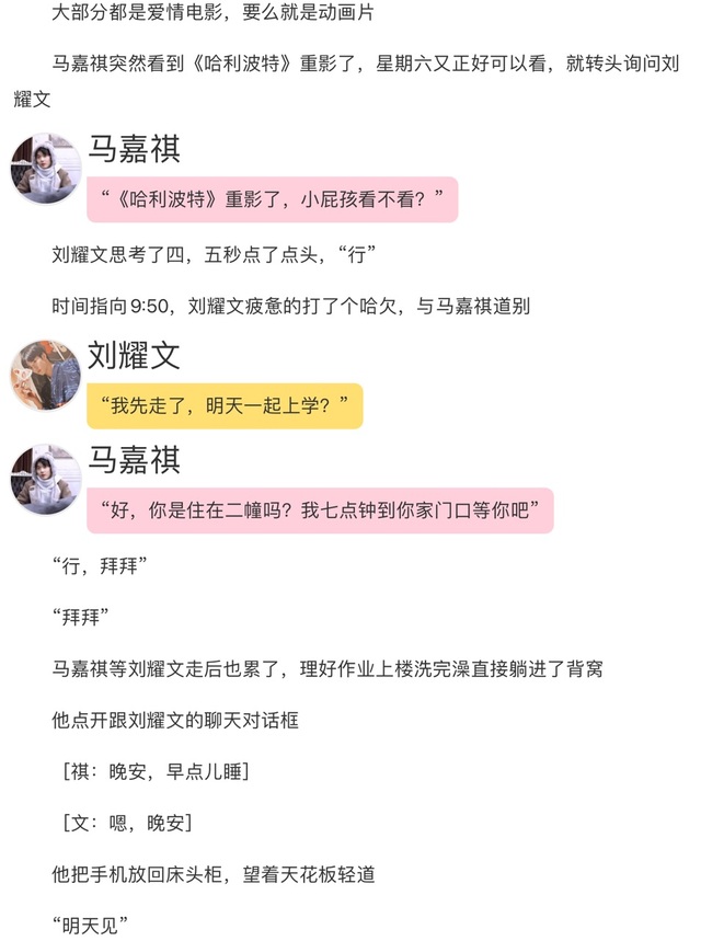 这时刘耀文已关上门准备走了,看马嘉祺愣在原地就叫了句:“咋了,走了”