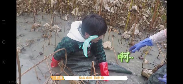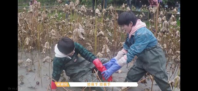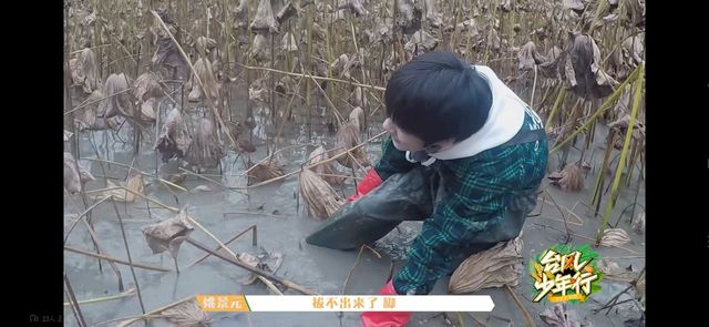 在宋亚轩把姚景元拉起来和丁程鑫帮夏轩脚拔出来后,四人就开始了艰难的挖藕战斗。