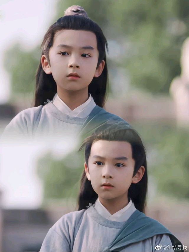 很快我就变成了黑发小男孩子~至于衣服穿的是听雨套装~额头一道神纹。头发是用小冠固定好的!