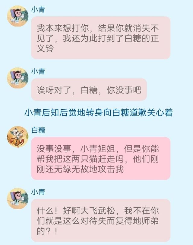 小青好啊你们两个,还把责任推到白糖身上,有没有一点身为师兄的担当!