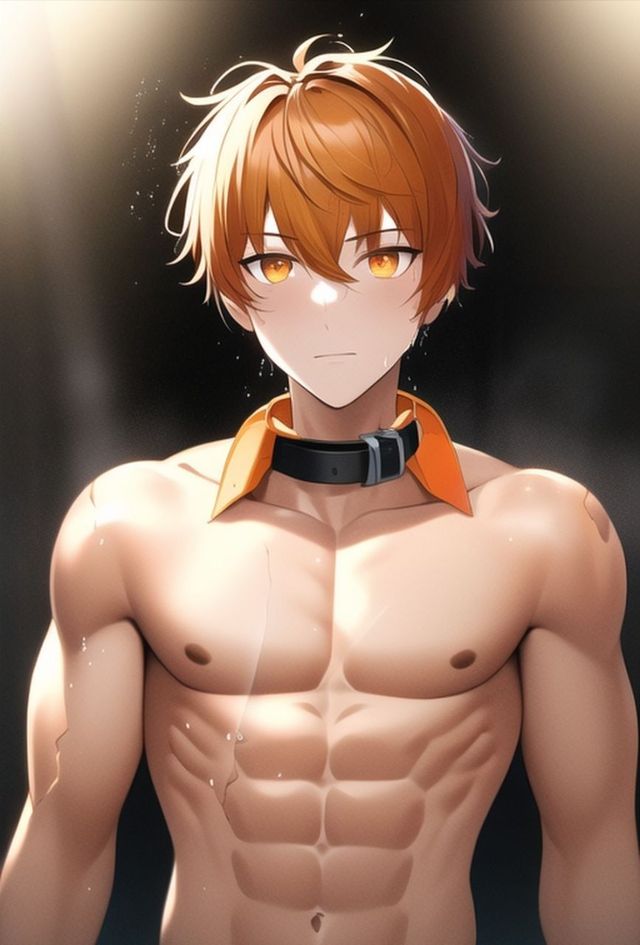 沐悦卿一个青年模样,有着精灵耳,小麦色的皮肤与深橙色的短发,短发干净利落,眼睛的颜色是与发色一样的深橙色,但比之头发更加明亮,胸口的领子敞开,露出强壮的胸肌,他的体型属于经常锻炼的那类人,阳刚又活泼。