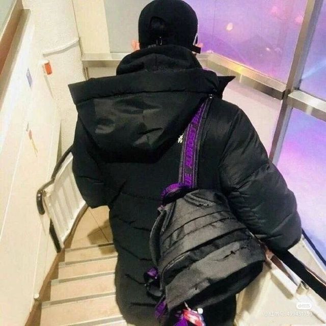 只见眼前一个背着黑包,高大的男子。正在楼梯处。