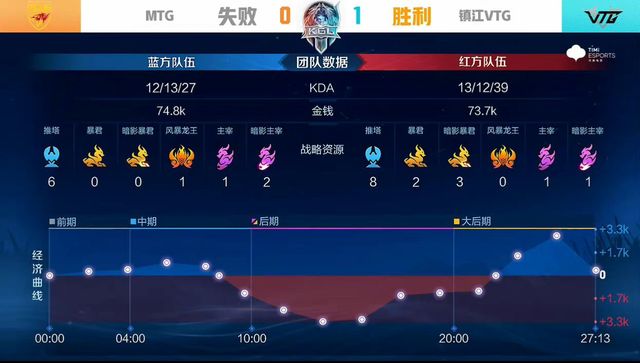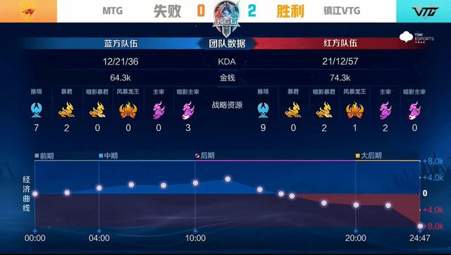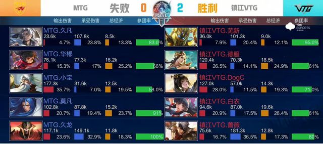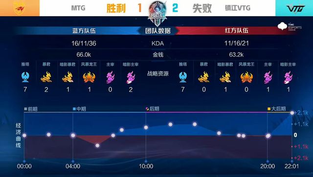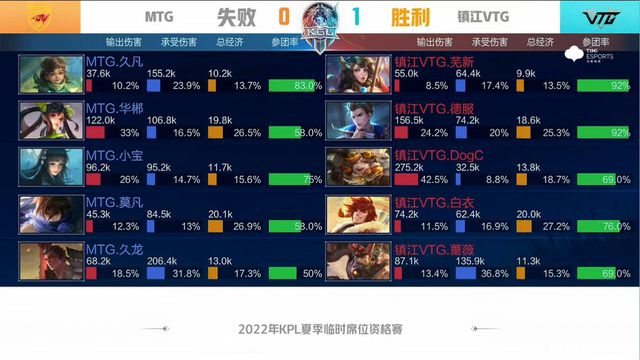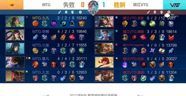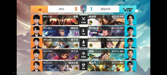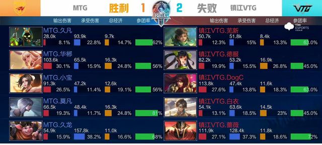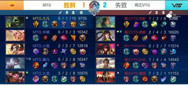 前期MTG在中路找准时机,集火击杀廉颇,但镇江VTG果断出击,两度成功抓单,反推对方中一塔。