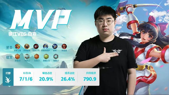 随后DogChen的沈梦溪打满伤害,镇江VTG顺势破中路高地。