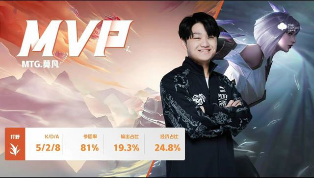 关键时刻,莫凡的澜完美进场,斩获三杀,MTG稳住局势。