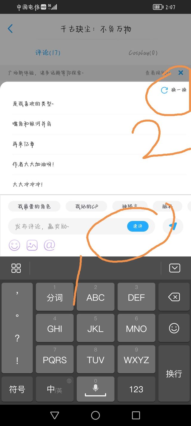 珠姬这个时候可以点“换一换”,选择十字以上的评论发布在书评区就可以了