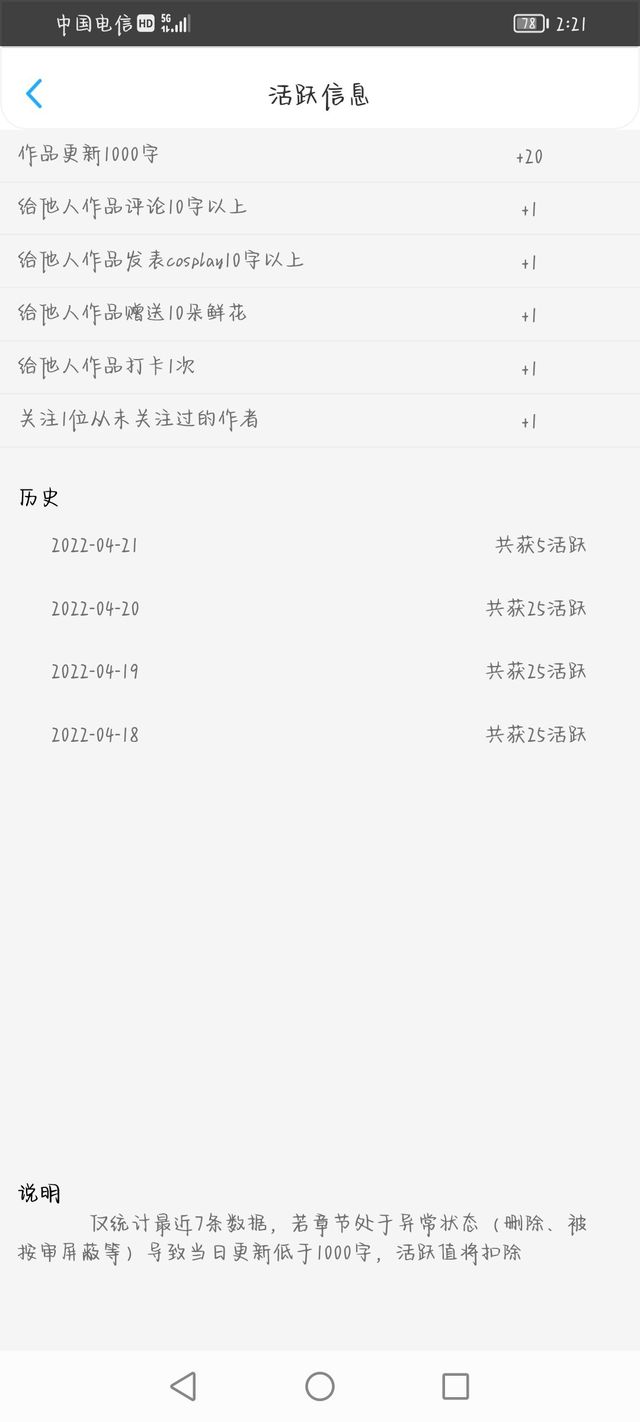 珠姬这个更新有要求的,每天一章一千字,更新完成后可获得20活跃值。