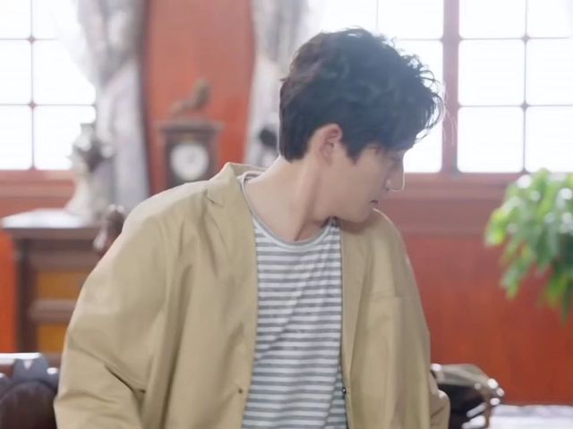 《君呤天下》面试剧组广场外,罗浮生一身杏色风衣,里面灰白条纹,一手习惯的搭在吴邪的肩膀上。