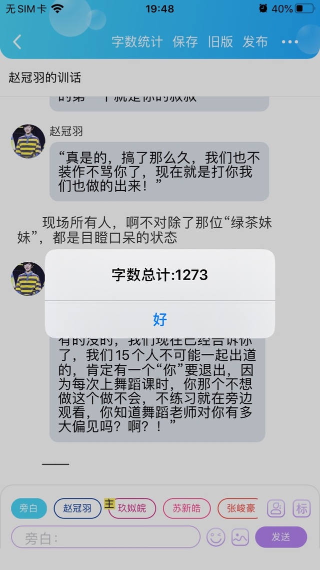 赵冠羽“我们14个人够多了没必要再多一个绿茶来挑拨我们之间的关系,看来你是关系户啊,净搞些有的没的,我们现在已经告诉你了,我们15个人不可能一起出道的,肯定有一个“你”要退出,因为每次上舞蹈课时,你那个不想做这个做不会,不练习就在旁边观看,你知道舞蹈老师对你有多大偏见吗?啊?!”