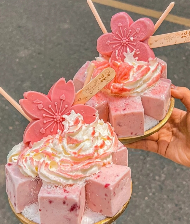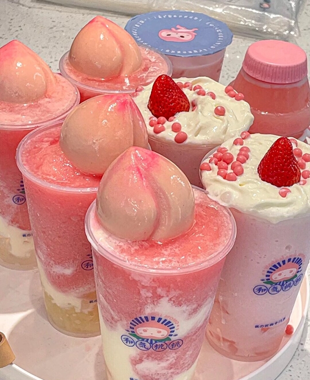 路子园.园希两杯梦龙粉桃冰淇淋 七分糖 上面加点巧克力