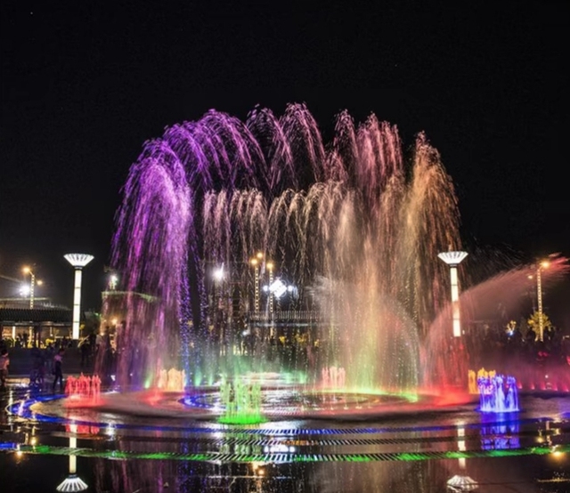 到了晚上水声响起 那是喷泉开启了.