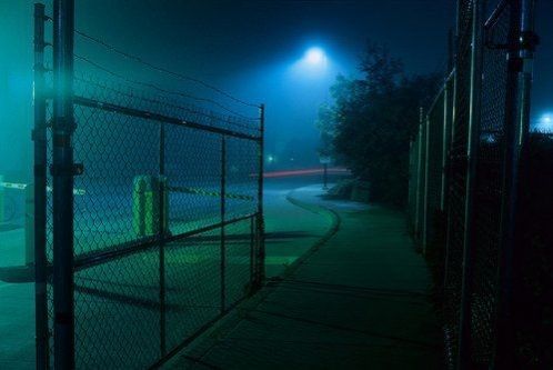 甚至头上的路灯连照下的微弱亮光都是绿色的