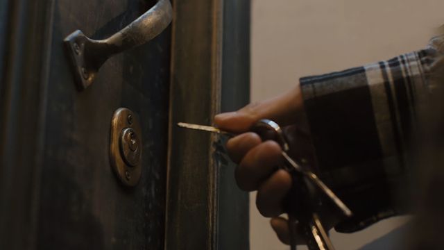 为什么这锁眼方向不对?门框上那是什么痕迹?
