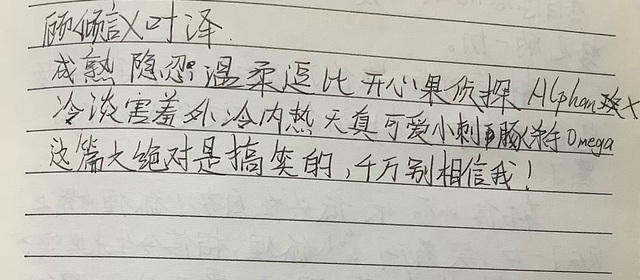 杏雨第八……好像没有第八了,就是这样了,先发个人设给你们看看吧,我去想想怎么写了,我还有一个坑要填,马上发了,可以先看看我的文笔,不过仅供参考,因为类型不一样,玩意我其中一个更好一点呢,好啦就差不多这些,有补充的话,我再跟你们说