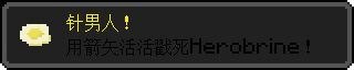完成成就的唯一方式就是手握一支箭矢,作为武器活活的戳死Herbrine。针男人就是要低伤害的武器正面硬刚各种令你恐惧的强大生物。