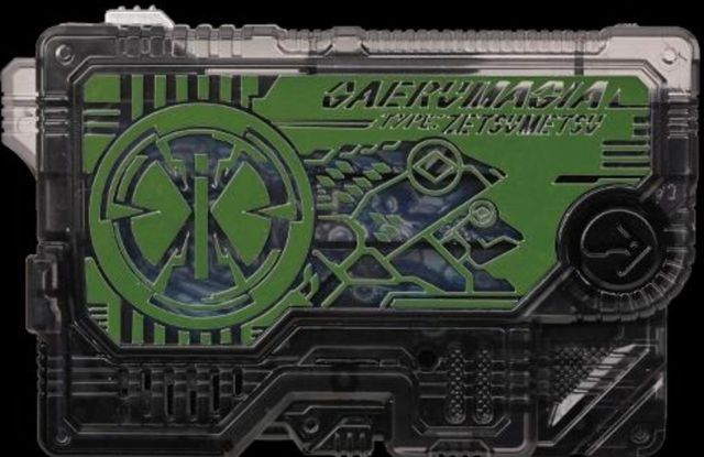 将暗绿色绝灭钥举起在身侧的香菜泽清音按下按钮,将其奋力的插进腰间的绝灭升华器后,用左手愤恨的推动了按钮。