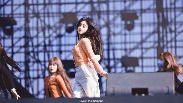 右边则是与王嘉尔斗舞的鞠婧祎,虽然她只是身着简单的粉衣和白裤,可却依旧耀眼夺目