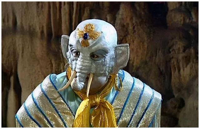 孔雀公主一跃而上,施法幻出水袖来。她将自己美丽的脸庞埋在长长的水袖下,乐声起,水袖猛然甩开,那妖艳般的脸庞展现在金翅大鹏眼前。踏着碎步往后退了几步,飞快地旋转起圈来,长长的水袖随身起舞,一边旋转一边慢慢的飞起,在空中定格,如仙如幻,迷醉众人。