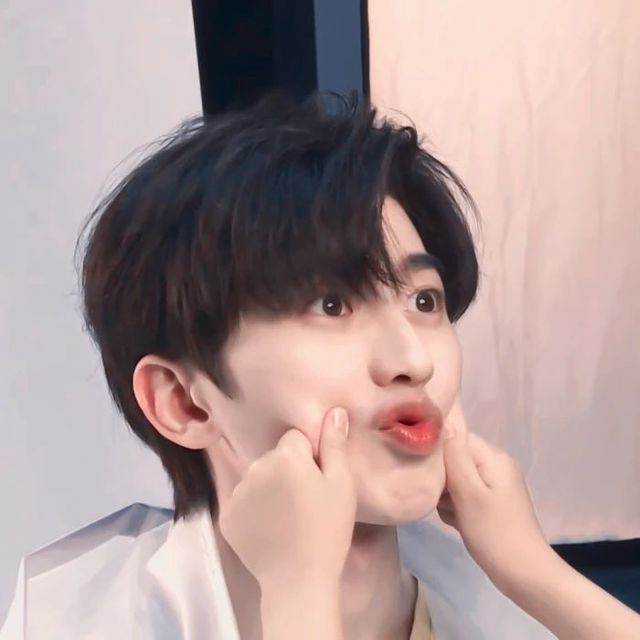 顾昧嘟了嘟嘴,也学蔡徐坤刚刚捏自己脸的样子去捏他的脸。