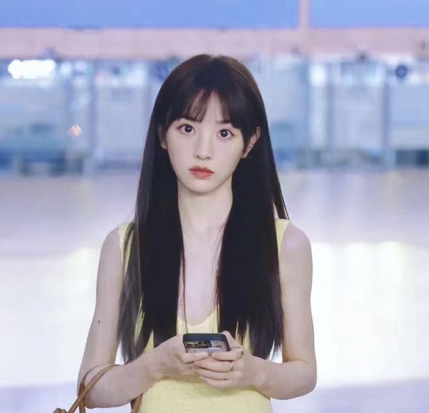 她长相本来就是甜美那挂,现在这个齐刘海把她衬得更乖了,让人有种想保护她的欲望。