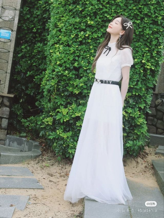 kaia穿着一条白色的裙子。kaia也是好长时间没有穿裙子了。上一次穿裙子还是跟着翟潇闻,姚琛,赵让他们出去玩的时候穿的裙子。那个时候穿的裙子是一条白色碎花裙。