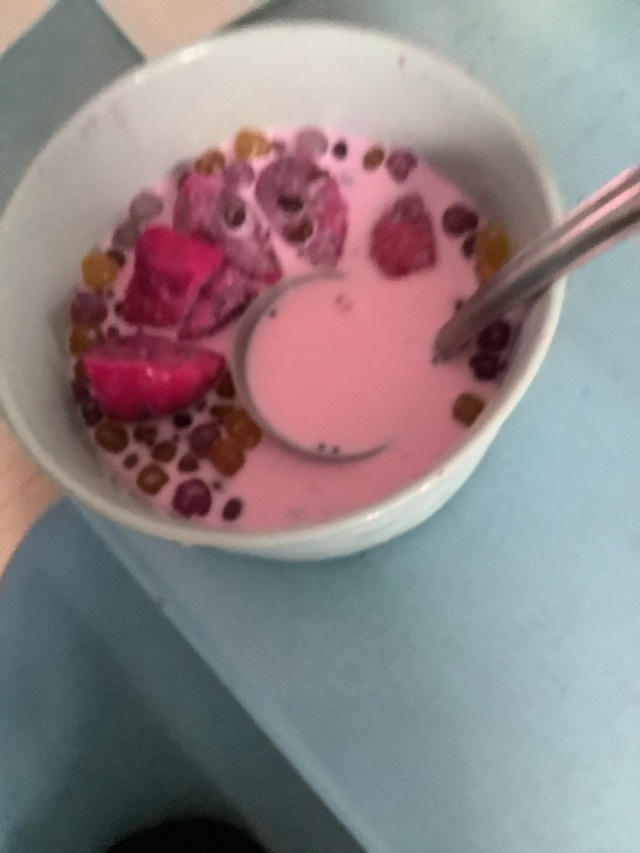 这就是红豆火龙果芋圆草莓汁西米露。