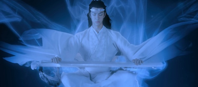 他们面前出现了一把琴,蓝湛坐了下去,闭上眼睛,等睁开时一脸不可思议。