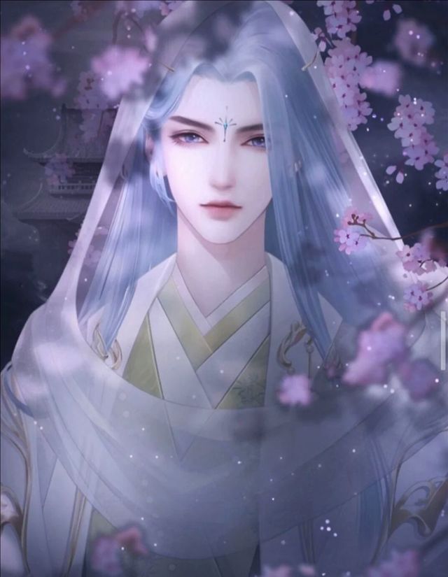 他有着一头如瀑布般直而柔顺的银白色长发,光洁白皙的脸庞透露着棱角分明的冷俊,浓密的剑锋眉稍稍向上扬起,渐细渐淡地隐进鬓角