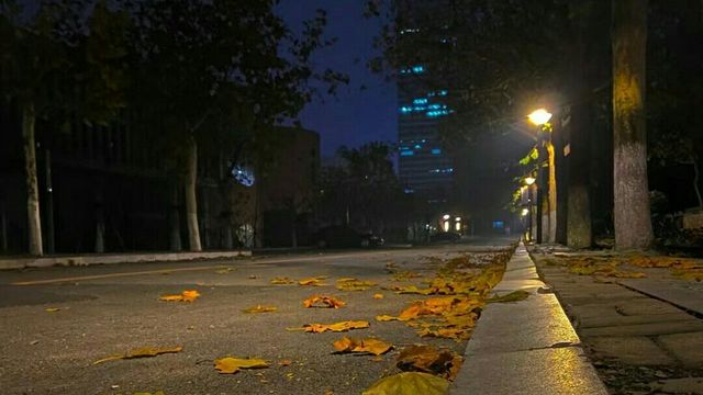 张峻豪走在路上,看着树上的枫叶掉落