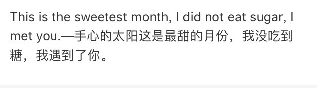 This is the sweetest month,l did not eat sugar,l met you.—手心的太阳这是最甜的月份,我没吃到糖,我遇到了你。