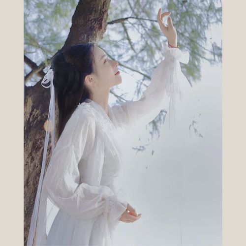 女孩一改往日,出门在外不便穿云梦校服,只得换上普通的白色衣衫