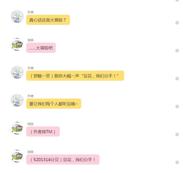 "(邪魅一笑)那你大喊一声“豆花,我们分手!”"