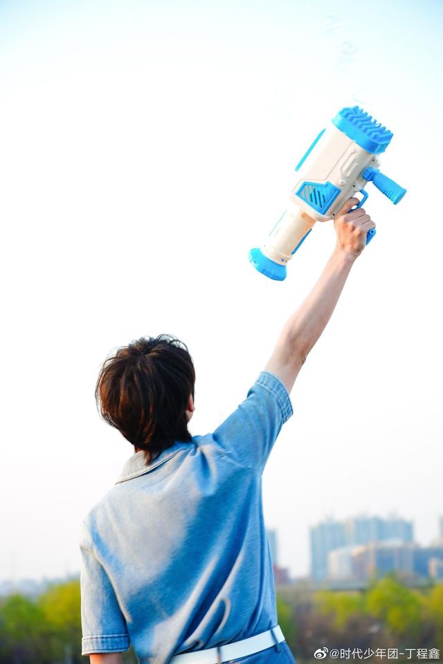 丁程鑫拿起早就准备好的泡泡机就开始朝顾清清发射。