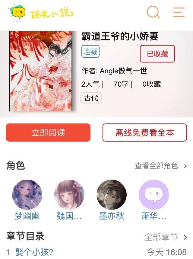 我又更了一个作品叫《霸道王爷的小娇妻》