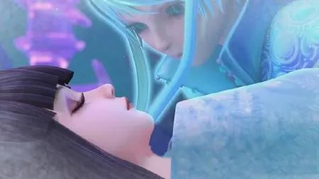 冰制成的公主床上,是变身后身着睡衣的王默,她还在熟睡中尚未醒来,长发微微变蓝。梦公主对她很是好奇呢
