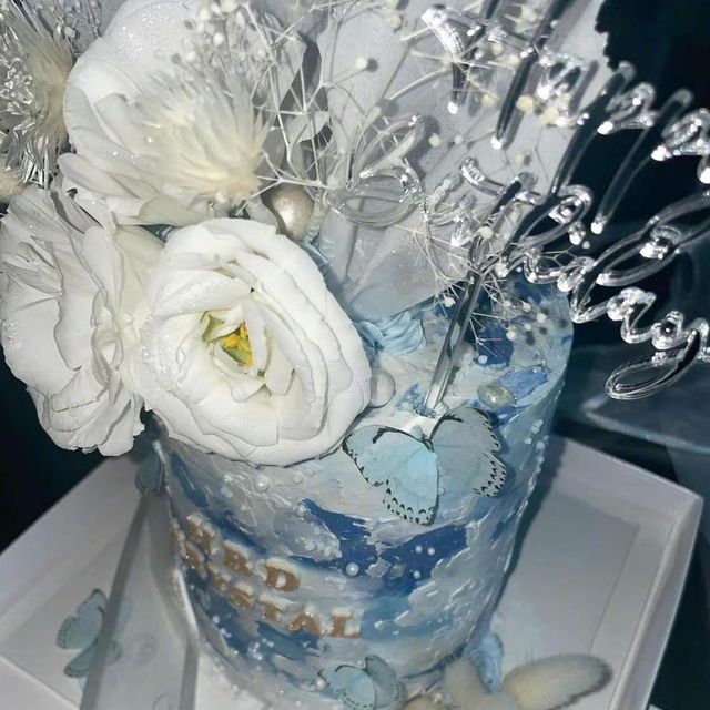 先把粉丝送的蛋糕拿出来拍粉丝福利~许愿