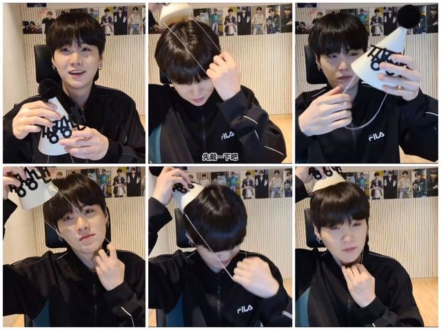 看他调完光,拿出来公司给准备的生日帽,为何戴个帽子都这么可爱!他是要找一个角度好把自己勒死吗?大大的脑袋,小小的疑惑!!