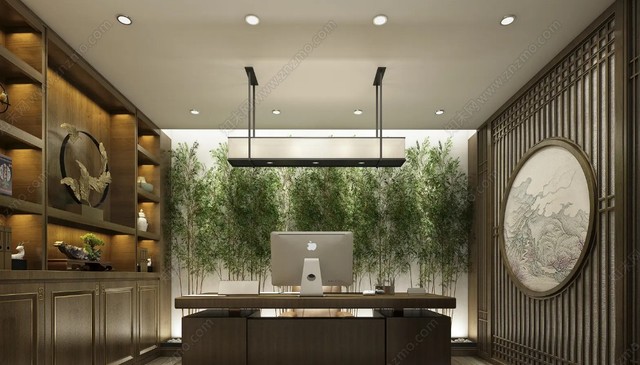 墙上挂着名家的书画真迹,办公桌后的陈列架上摆满了各类书籍杂志和原木雕塑,甚至连卡其色沙发前的茶几都是设计师限量款的根雕作品。