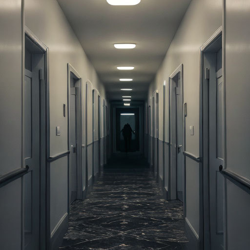 村上等人一起来到监控画面前仔细查看起来,突然一个影子出现在监控画面的走廊里面。