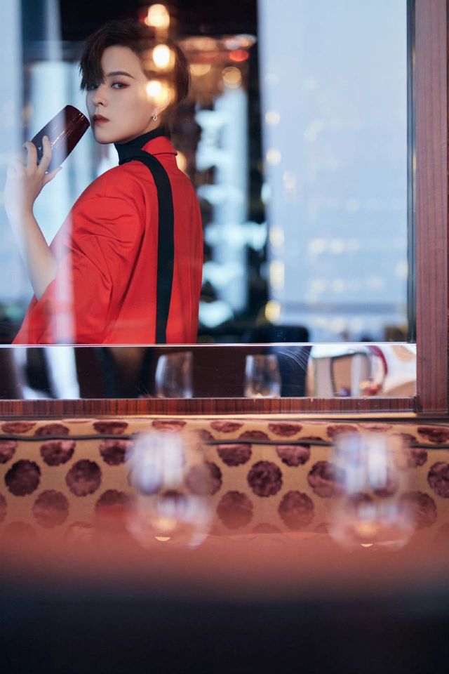 此时的她,一身大红色礼服,干练不失温柔的短发,耳朵上配着昂贵不失气质的耳饰,脸上画着精致的妆容,一时被镜子里的自己给迷住了。