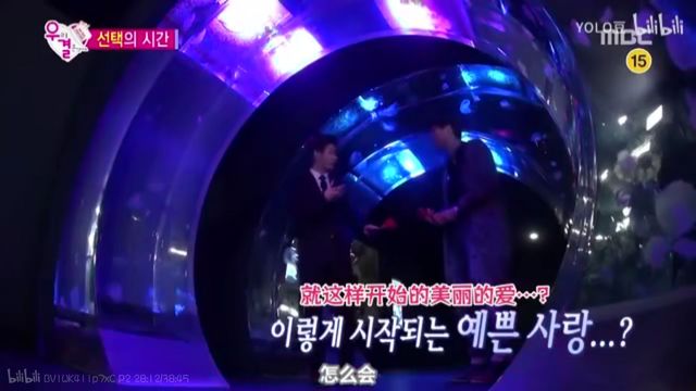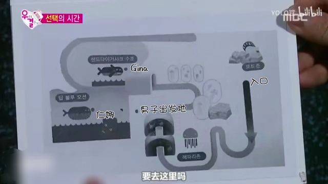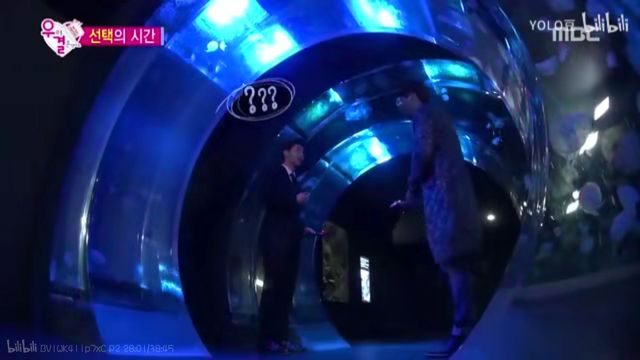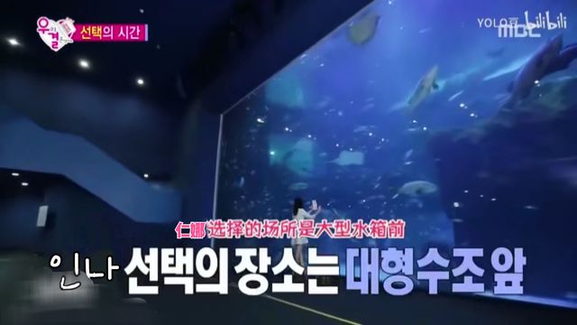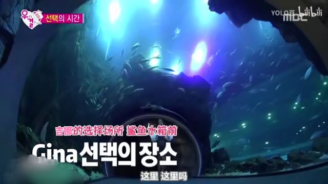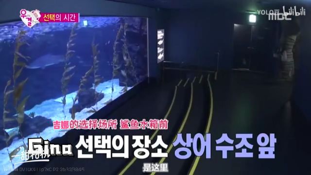 摄象哥哥抬起了手默默指了跟Gina完全不同方向的地方,而,刘仁娜所在的地方是在水族馆的最里边,所以两个男生进来的话,是会最先看到Gina。