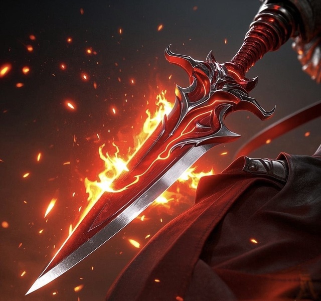 “红莲刃。”一把刀刃在手中逐渐聚合显现,银白色的刀身,刀尖处略微弯曲,刀柄处有橙、红色相间的流纹状的点缀,看起来就像流动着的烈焰一般。