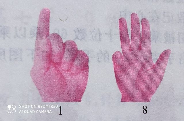 [解题过程]第一步:86的十位数80用左手表示,86的个位数6用右手表示,如下图所示。