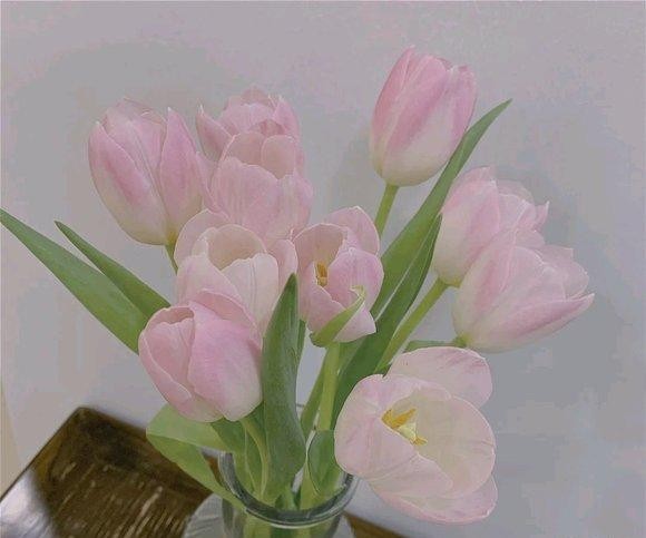 床头的郁金香开放热烈,是美丽。