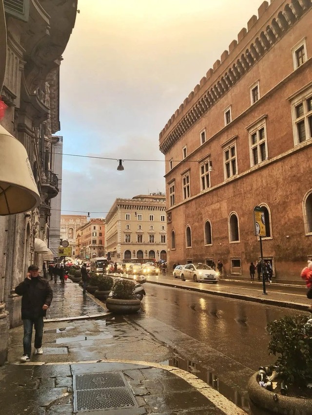 落日的余晖加上笠松和建筑立面,俨然一副油画的专属色彩。和卡洛斯完全不一样的景色,透过窗户,随处风景如画。