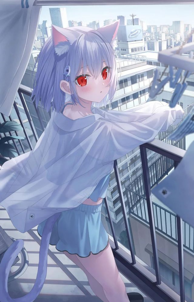 跑到了阳台上。
