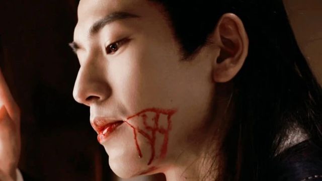 而他自己也穿上了一袭红衣,嘴唇边染着血迹。他坐在床沿,一只手紧紧抓着姜雪娇的手,另一只手拿着姜雪娇用来自戕的那把匕首,匕首上还留着血迹。